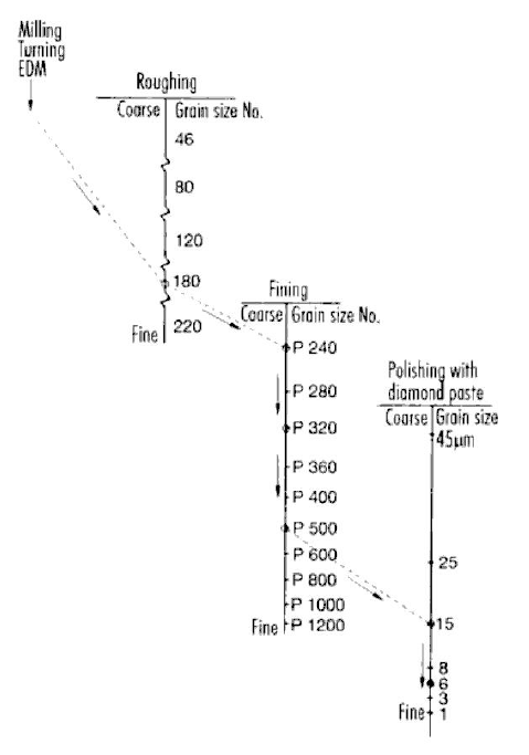 Coarse grinding produces a blank-metal, geometrically correct surface with a roughness of Ra< 1 um, which can be finished in precision-grinding step or immediate polishing .